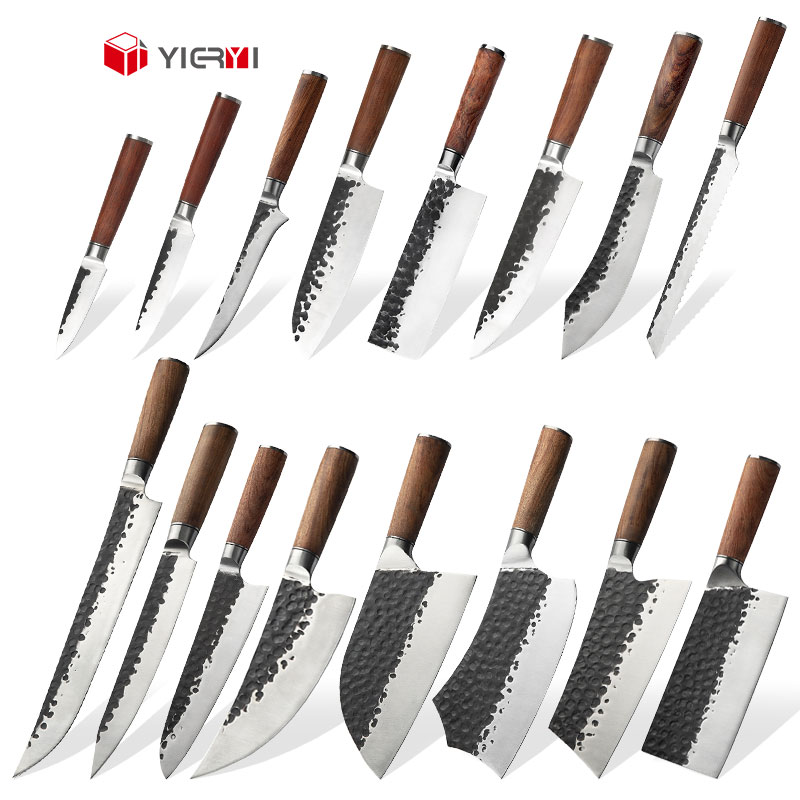 In Voorraad Handgesmeed Koksmes Set Houten Handvat 5cr15mov Roestvrij Staal Utility Hakslager Hakmes Brood Snijden Messen